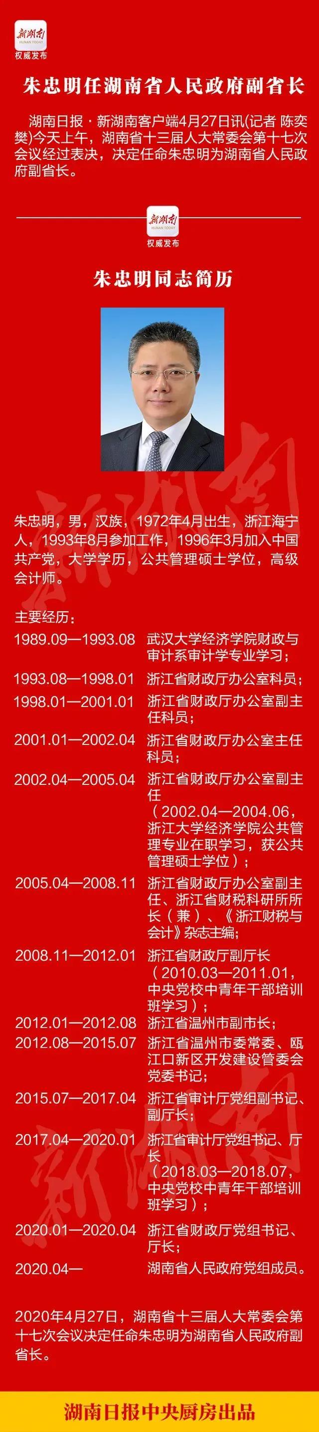 兔子先生 校友朱忠明任湖南省人民政府副省长