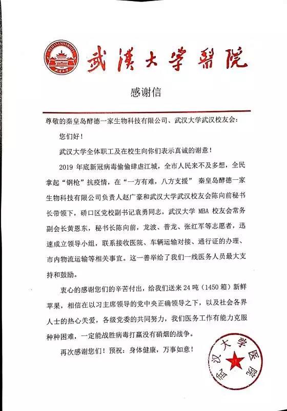 中南医院、人民医院、武汉亚心总医院等全省80余家医院、李兰娟院士医疗队、苏、川、沪等九省援鄂医疗队、江岸区慈善总会等组织合计捐赠水果、牛奶、鸡蛋等生活物资超过100吨,医用口罩、防护镜等物资若干!参与的MBA校友人数超过1000人!其中兔子先生