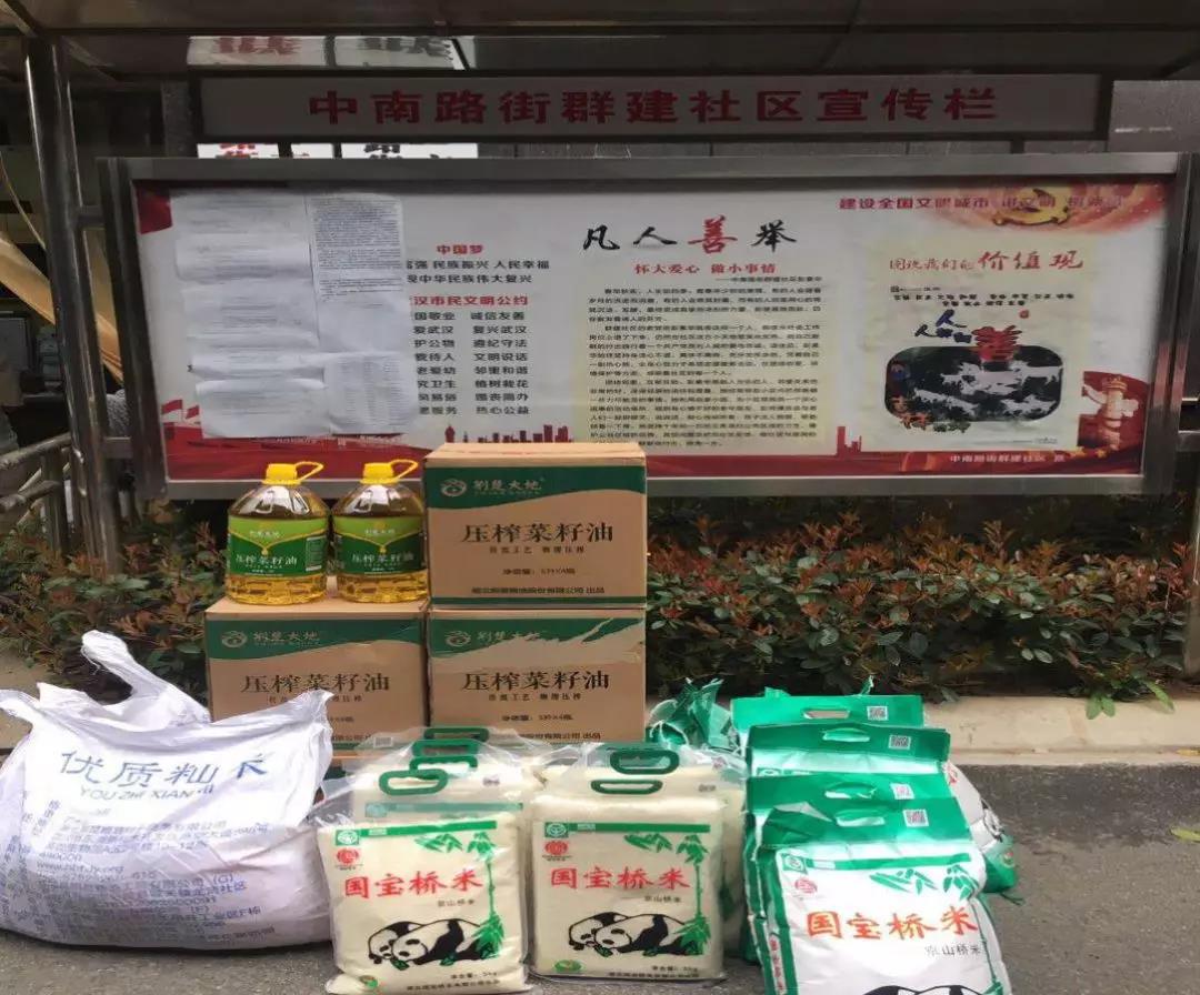 当天,国宝桥米联合省荆楚粮油积极组织货源、人员和物流车辆,分别为张家湾社区和鸿玺社区送上一批国宝桥米和荆楚大地菜籽油,为战胜疫情贡献一份自己的力量。